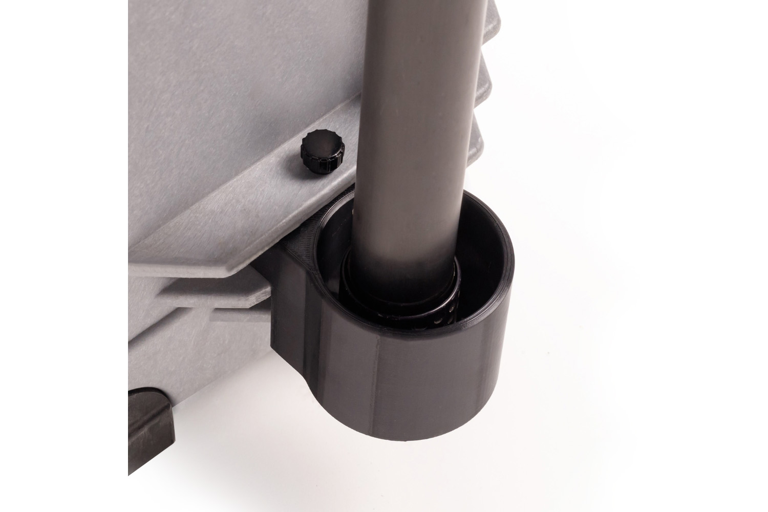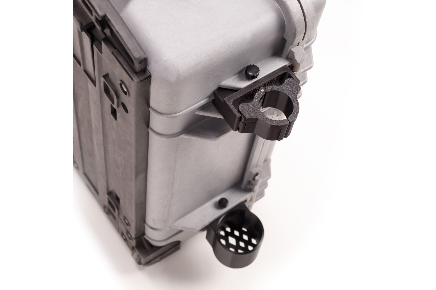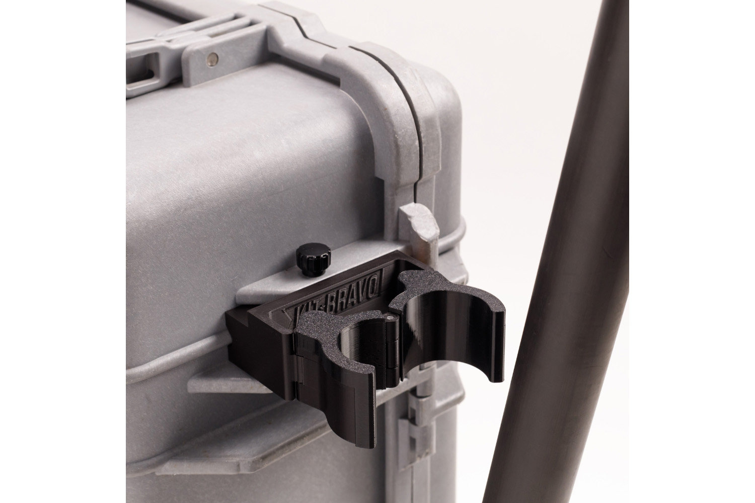 Χρησιμοποιήστε τη βαλίτσα Pelican για να συγκρατείτε με ασφάλεια το boom, ώστε να μπορείτε να εργάζεστε στο μικρόφωνο με ελεύθερα χέρια. Ο μηχανισμός ανοίγει και κλείνει με πίεση στο ίδιο το κοντάρι, επιτρέποντας αγκίστρωση και απελευθέρωση με ένα μόνο χέρι. Η ασφάλιση είναι πολύ σταθερή, επιτρέποντας τη μετακίνηση της βαλίτσας με ρόδες ενώ το boom παραμένει τοποθετημένο. Το σύστημα μπορεί να αφαιρεθεί εύκολα, απελευθερώνοντας τα δύο στηρίγματα και αποθηκεύοντάς τα μέσα στη βαλίτσα. Δεν απαιτείται τρύπημα στο εσωτερικό της βαλίτσας — οι οπές γίνονται μόνο στα εξωτερικά ενισχυμένα σημεία, διατηρώντας τις εργοστασιακές της ιδιότητες. Ακολουθήστε τον οδηγό εγκατάστασης για την πρώτη χρήση. Η επάνω βάση αγκύρωσης είναι εξοπλισμένη με χαλύβδινους πείρους για αντοχή και μαλακή θερμοπλαστική επένδυση για την αποφυγή φθοράς του boom. Η κάτω βάση είναι κατασκευασμένη από εξαιρετικά ανθεκτικό ημίσκληρο υλικό, προστατεύοντας τον εξοπλισμό και διαθέτοντας διάτρητο πάτο για αποφυγή συσσώρευσης σκόνης ή υπολειμμάτων.